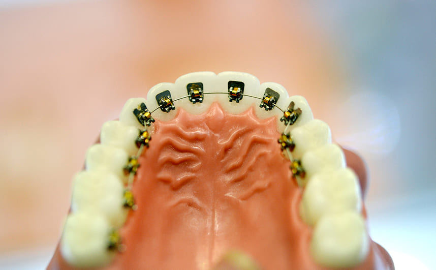 ワイヤー矯正の装置を歯の裏側に取り付ける矯正方法です。ワイヤー矯正最大の難点である装置が目立つことを解決できます。ただし、ドイツに特注にて矯正装置をオーダーすることもあり、治療費は表側矯正よりも高く設定されております。